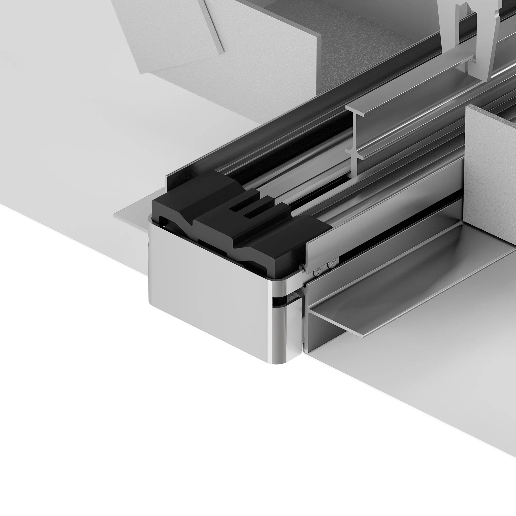 Заглушка металлическая для профиля FOLED-50-CENTER. Имеет паз для крепления натяжного потолка, что позволяет создавать линию света, заканчивающуюся посередине потолка. Цена за 1 шт.