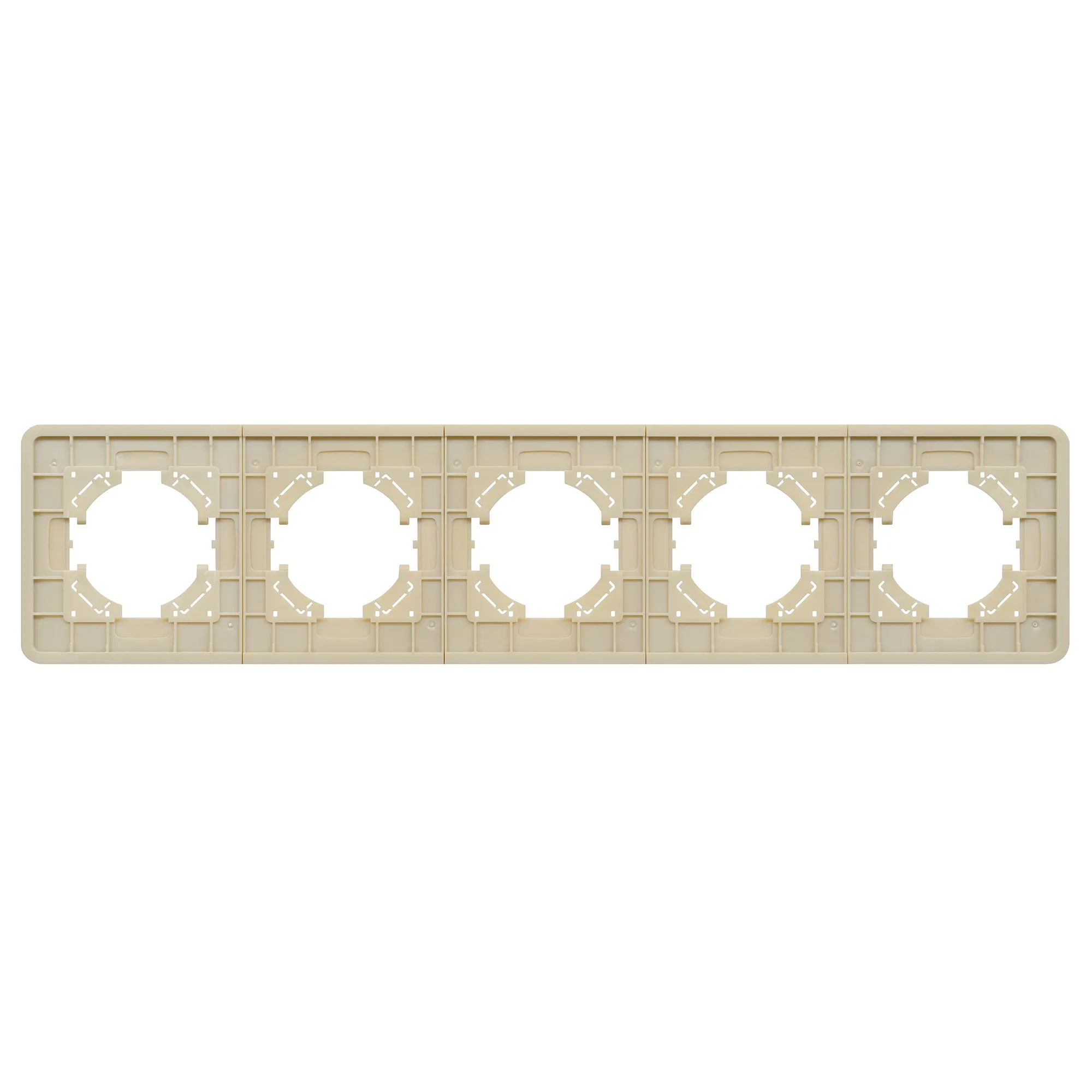 Рамка стеклянная на 5 постов, под встраиваемый механизм. Цвет - золотой. Уровень герметичности IP20. Ориентация монтажа - горизонтальная (основным ориентиром служат посадочные выступы для накладки механизма).
